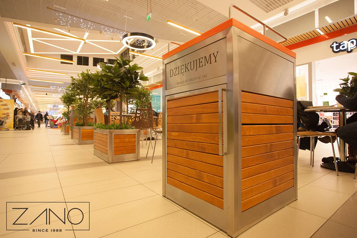 Kanta je dizajnirana za prihvat uloška u obliku standardne plastične kante na kotačiće od 120 L - uložak mora osigurati korisnik kante. Projekt Salver 03.068 je moderna kanta za otpad dizajnirana za ugostiteljske prostore ili ugostiteljske prostore u maloprodajnim i uslužnim centrima. Poseban prostor na vrhu kante omogućuje funkcionalno sortiranje pladnjeva restorana. Posebno dizajnirani bočni štitnici sprječavaju njihovo klizanje ili ispadanje. Kanta Salver izrađena je od najkvalitetnijih materijala: nehrđajućeg čelika (ili crnog čelika) i drva (domaćeg ili egzotičnog). Kupci također mogu odabrati vrstu ploče od koje će biti izrađen predstavljeni model kante. Posebno nudimo Trespa i Corian ploče. Trespa je vatrootporna i izuzetno izdržljiva ploča. Izrađena je od antibakterijskog, samočistećeg materijala koji ne zahtijeva upotrebu dezinficijensa. Corian je također izdržljiva ploča, otporna na bilo kakva mehanička oštećenja povezana s čestom upotrebom. Osim navedenog, dostupne su i čelične i drvene ploče. Dimenzije kante i obloge za kantu mogu se mijenjati na zahtjev. Košara Salver je funkcionalan i estetski element za svaki ugostiteljski prostor.