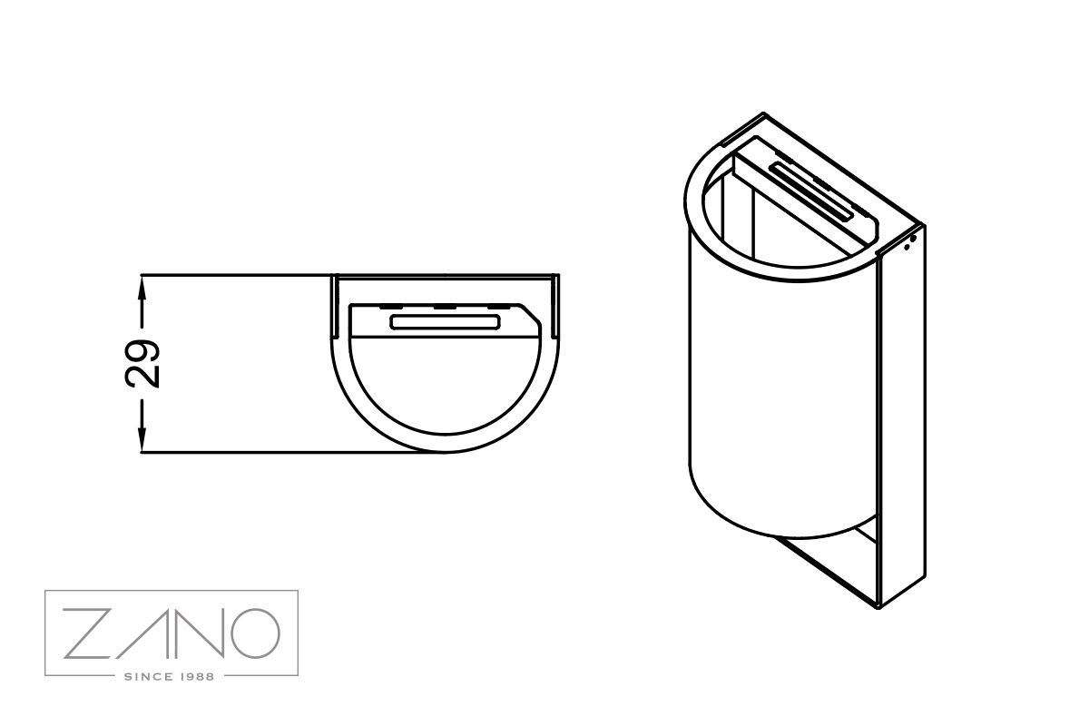 Kanta za otpad Start 03.044.1 ima čeličnu konstrukciju s uklonjivim umetkom i ugrađenom pepeljarom. Kanta je dostupna u dvije verzije: u cijelosti od nehrđajućeg čelika ili od ugljičnog čelika s elementima od nehrđajućeg čelika kao što su spremnik kante i pepeljara. Uložak kante izrađen je od tankog pocinčanog lima. Cijena ove kante za otpad je atraktivna i relativno niža od ostalih modela u našoj ponudi, uglavnom zbog minimalističkog izgleda i jednostavnije konstrukcije. Međutim, ova niska cijena ne ugrožava kvalitetu izrade, pažnju posvećenu detaljima i korištene materijale, koji su isti kao i kod naših drugih kanti za otpad.