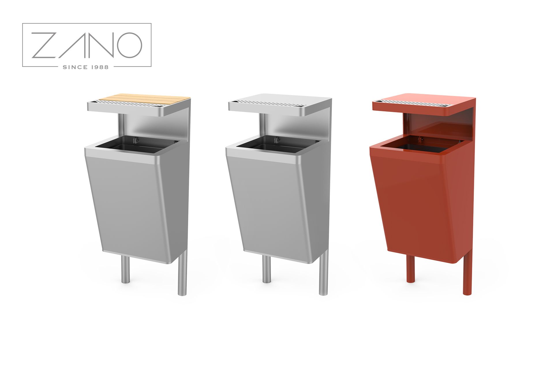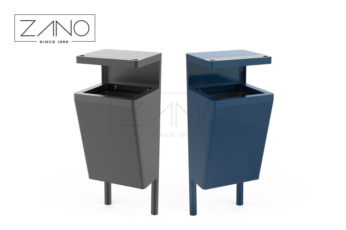 Kanta za otpad Scandik je nezaobilazan dio svakog modernog urbanog prostora. Njen minimalistički dizajn lako se uklapa u karakter većine gradova, ulica, parkova, bulevara, trgova, trgovačkih centara i željezničkih kolodvora. Ovo je nastavak linije uličnog namještaja Scandik, koja uključuje klupe, urbane žardinjere, solarnu stanicu i kante za smeće. Dostupne su razne verzije kanti: bez krova, s krovom i pepeljarom na vrhu te razne verzije kanti za recikliranje. Kanta za otpad Scandik 03.046.2 je verzija s pepeljarom. Pepeljara se nalazi u nadstrešnici. Izrađena je od nehrđajućeg čelika. Cijela kanta je izrađena od čelika, a poduprta je s dvije noge dizajnirane za ugradnju u beton. Možete birati između nehrđajućeg čelika ili ugljičnog čelika, pocinčanog i plastificiranog u navedenoj RAL boji. Nadstrešnica je izrađena od čelika i drva. Možete birati između domaćeg ili egzotičnog drva. Umjesto drva, možete koristiti HPL laminat ili nadstrešnica može biti u cijelosti izrađena od čelika. Za lakše zamjenjivanje vreća za smeće, kanta ima uložak od pocinčanog lima.