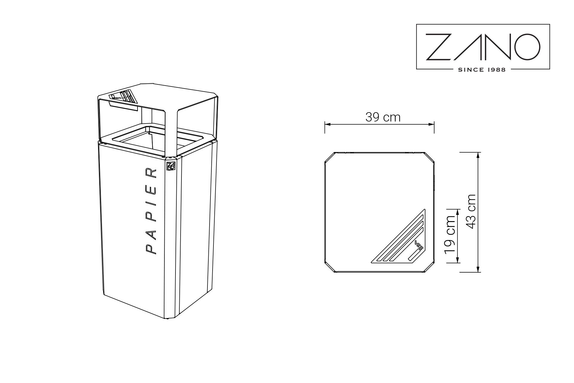 Kanta za reciklažu s pepeljarom 03.048.2 je zakrivljene konstrukcije izrađene od ugljičnog ili nehrđajućeg čelika. Otvara se s vrha i opremljena je unutarnjim umetcima. Prilagodba je dostupna na zahtjev - verzija od ugljičnog čelika je praškasto obojena u bilo kojoj RAL boji, a natpisi se mogu izrezati, zalijepiti ili ugravirati na čelik u slučaju nehrđajućeg čelika. Ugradnja kante: pričvršćivanje vijcima.