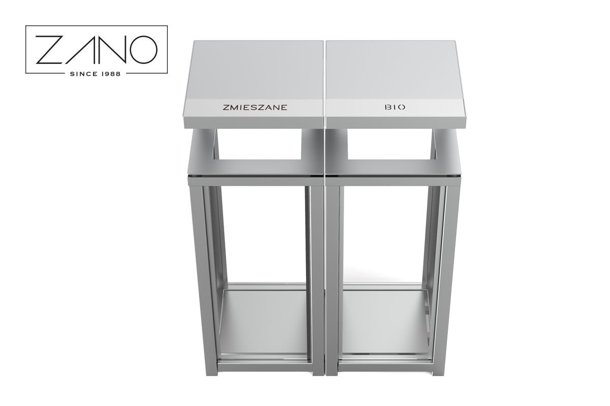 Kanta za recikliranje Altus 12.054.4 je vanjska kanta s dva odjeljka za sortirani otpad. Kanta nema unutarnje obloge, a stijenke su joj izrađene od pleksiglasa, što omogućuje bolji pregled otpada unutra pri korištenju prozirnih vreća. Ovo je sigurnosna mjera koja proizlazi iz određenih standarda protiv terorizma i protiv bombi. Okvir kante izrađen je od ravnog čelika. Dostupan je u nehrđajućem čeliku ili ugljičnom čeliku, obojan u RAL boju po želji kupca. Pogledajte više kanti iz linije Altus. Možete birati između kanti sa stijenkama od čelika, drva, HPL-a i arhitektonskog betona.