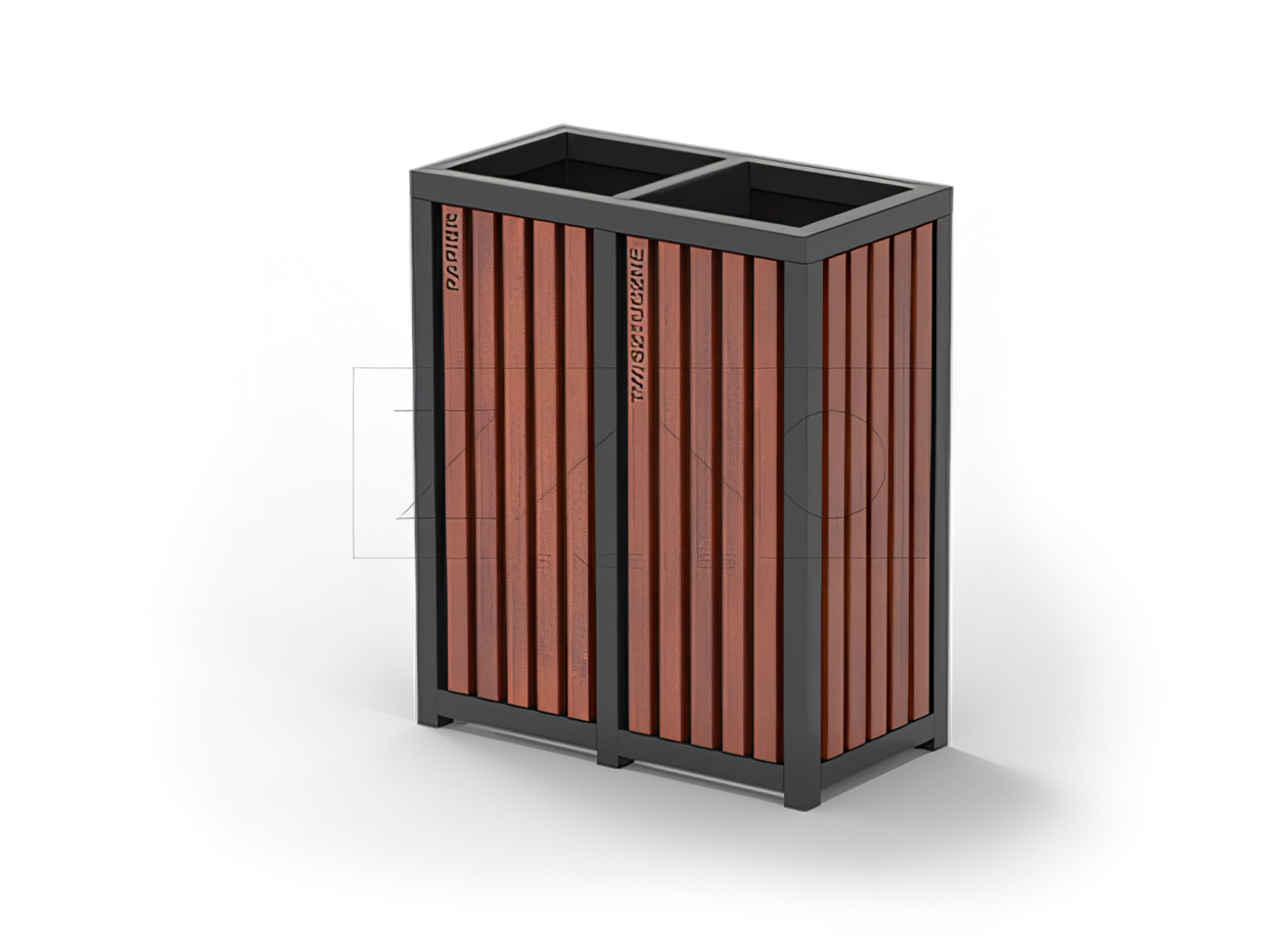 Model Altus je moderna kanta za sortiranje otpada. Njen dizajn temelji se na estetskoj kombinaciji čelika i najkvalitetnijeg drva. Na zahtjev kupca, kanta Altus može biti izrađena od konstrukcijskog čelika ili nehrđajućeg čelika, dok je završna obrada od domaćeg ili egzotičnog drva. Kanta za recikliranje Altus ima dizajn s dva odjeljka - svaki odjeljak sadrži pocinčani uložak. Prilikom sortiranja otpada možete koristiti samo uložak ili jednokratne vrećice u bojama za recikliranje. Altus je vrlo funkcionalan model - svaka drvena letvica ima urezane natpise koji označavaju namjenu svakog odjeljka. Kanta za recikliranje Altus može se koristiti kao samostojeći model, na primjer, u prolazu trgovačkog centra, ili se može usidriti u tlo. Altus predstavlja modernost i eleganciju u maloj arhitekturi, a istovremeno brine o okolišu.