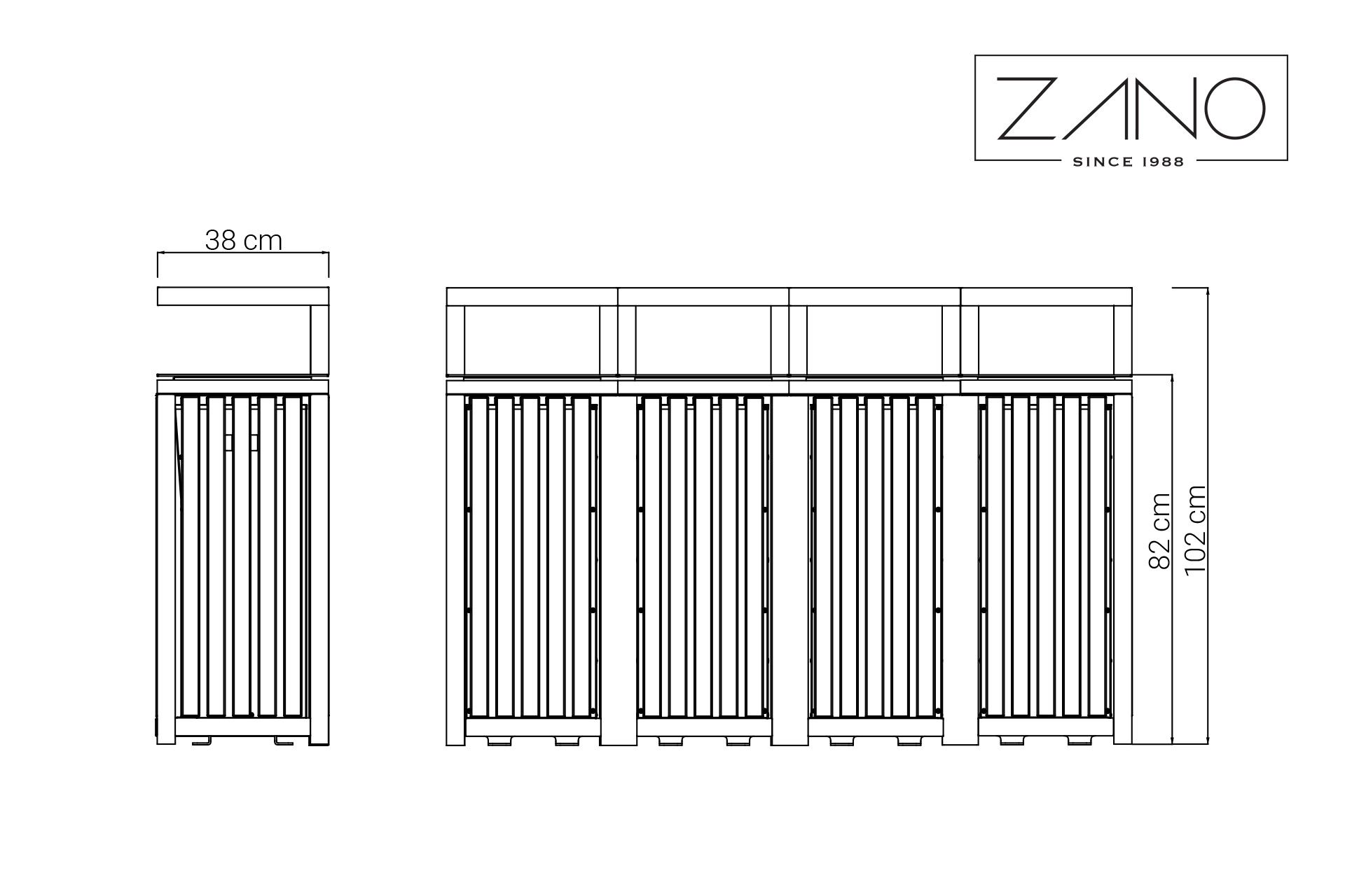 Zidovi kante za otpad izrađeni su od drvenih dasaka, arhitektonskih betonskih ploča u Trigono uzorku i HPL laminata.