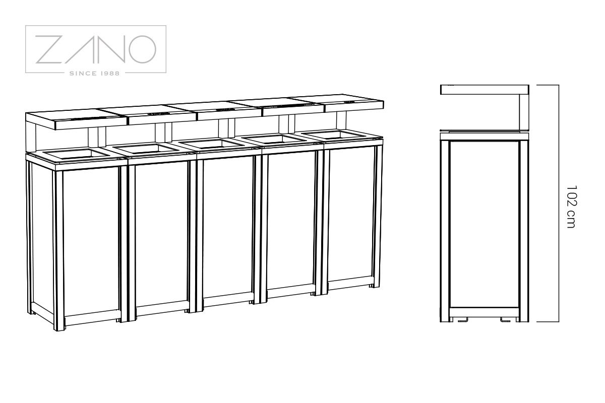 Kanta za recikliranje Altus 15.554.4 je vanjska kanta s pet odjeljaka za sortirani otpad. Kanta nema unutarnje obloge, a stijenke su joj izrađene od pleksiglasa, što omogućuje bolji pogled na otpad unutra pri korištenju prozirnih vreća. Ovo je sigurnosna mjera koja proizlazi iz određenih standarda protiv terorizma i bombi. Okvir kante izrađen je od ravnog čelika. Dostupan je u nehrđajućem čeliku ili ugljičnom čeliku, obojan u RAL boju po želji kupca. Prikaži višekošare iz linije Altus Nudimo varijante kanti sa stijenkama od čelika, drva, HPL ploča i arhitektonskog betona.