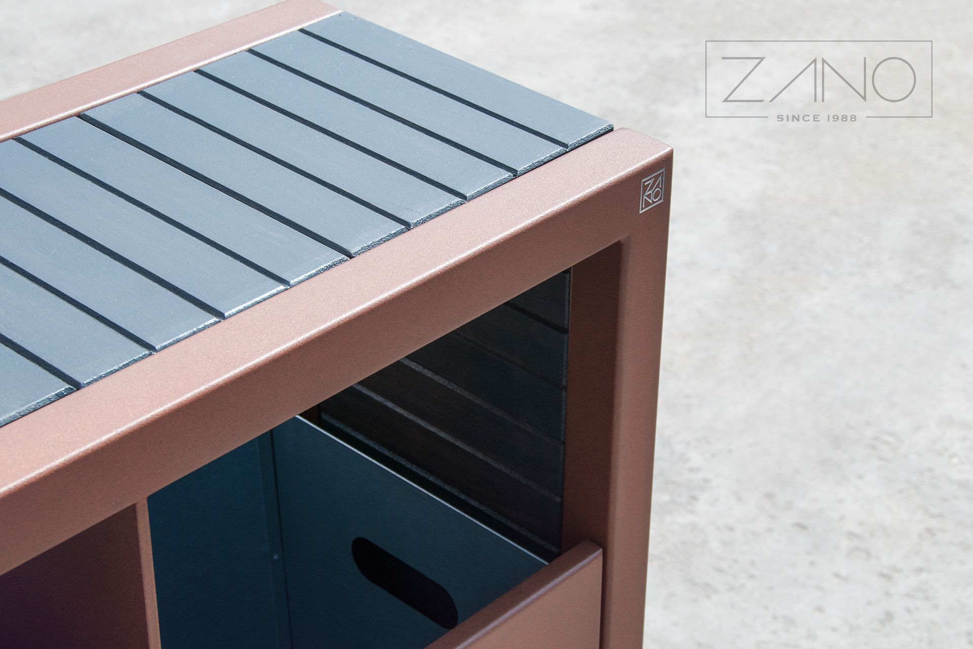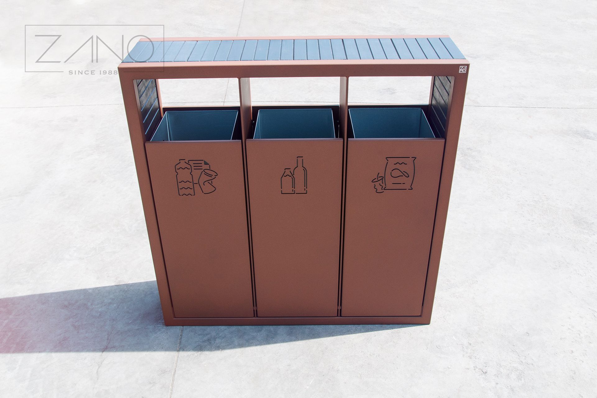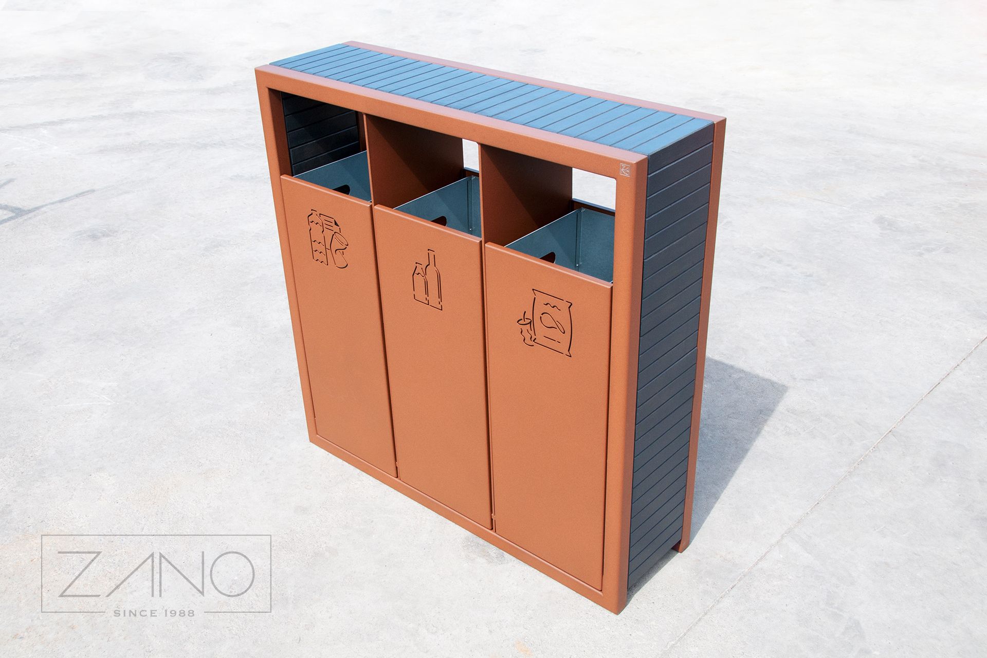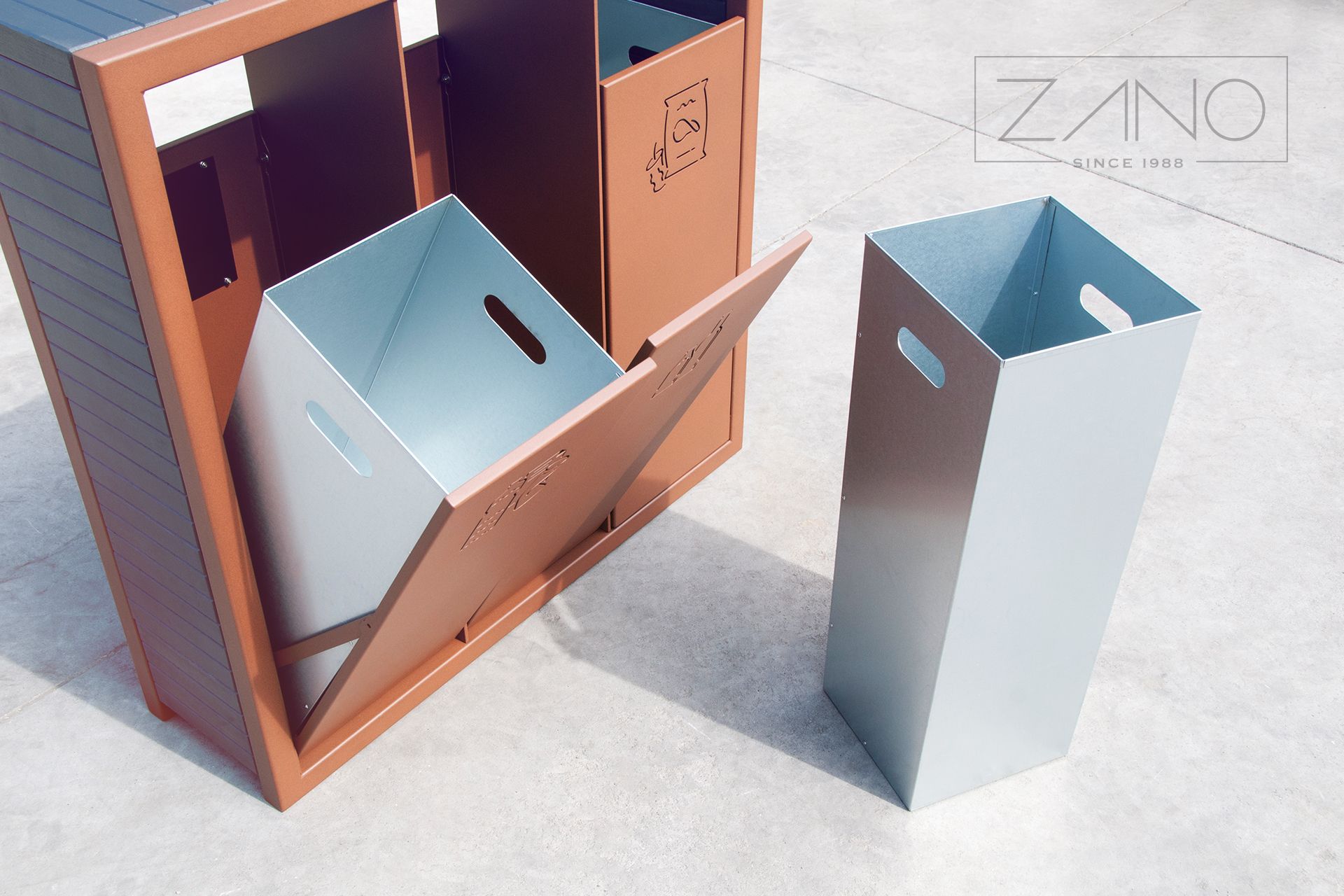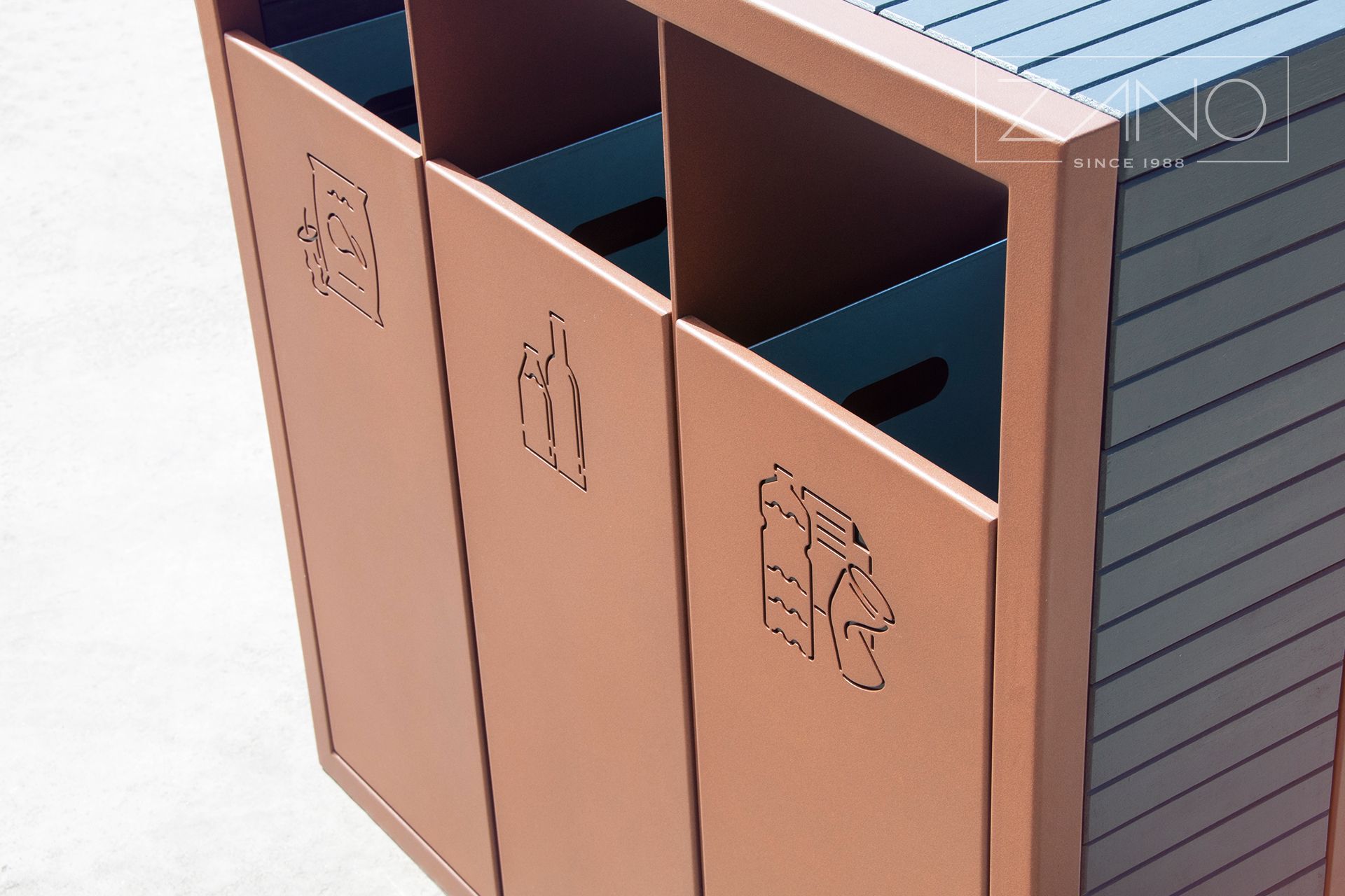 Kanta za sortiranje otpada Pavo 15.063 je moderna, jednostavna za korištenje i izuzetno izdržljiva kanta za sortiranje otpada. Zano je uložio sve napore kako bi ovaj model bio ne samo funkcionalan već i estetski ugodan. Jednostavnost i minimalizam nehrđajućeg čelika sa satenskom završnom obradom (opcionalno dostupnog u crnoj boji) nadopunjeni su toplinom i bezvremenskom klasikom bočnih ploča s nježnom drvenom strukturom. Izbor nehrđajućeg čelika definitivno jamči izdržljivost i čvrstoću, unatoč učincima česte upotrebe ili izloženosti vanjskim uvjetima. Nadalje, nehrđajući čelik ne zahtijeva često održavanje. Trokomorni dizajn kante za recikliranje Pavo, s posebnim oznakama, omogućuje brzo i jednostavno sortiranje stakla, plastike i papira. Kanta Pavo 15.063 je prekrasan moderan dizajn stvoren imajući na umu dobrobit našeg okoliša.