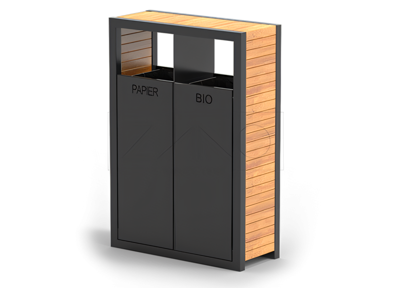 Dvokomorna kanta za recikliranje Pavo 15.263 je čvrsta gradska kanta modernog, univerzalnog izgleda, profinjena s pažnjom posvećenom i najsitnijim detaljima. Konstrukcija - Izrađena od čelika s drvenom završnom obradom. Opcije čelika uključuju ugljični čelik, pocinčani čelik i čelik s praškastim premazom prema specifikacijama kupca.RAL boja ili nehrđajućeg čelika. Drvo koje možete odabrati je meko drvo europskog podrijetla, dvostruko lakiranoboja koju je naveo kupac ili egzotično drvo (zaštićeno uljem). Alternativno, možemo koristiti HPL umjesto drva ili košara može biti u cijelosti izrađena od čelika. Unutarnji ulošci - Kanta ima dva unutarnja uloška izrađena od pocinčanog lima. Pristup njima je jednostavan naginjanjem prednje strane kante. Način montaže - Osnovni način montaže košare je pričvršćivanje košare vijcima na temelj. Personalizirajte svoju narudžbu - košarica može biti ugravirana tekstom prema namjeni (npr. papir, metal, miješano) ili ugravirana s informacijama ili logotipom u nehrđajući čelik. Na košaricu se može dodati i naljepnica.