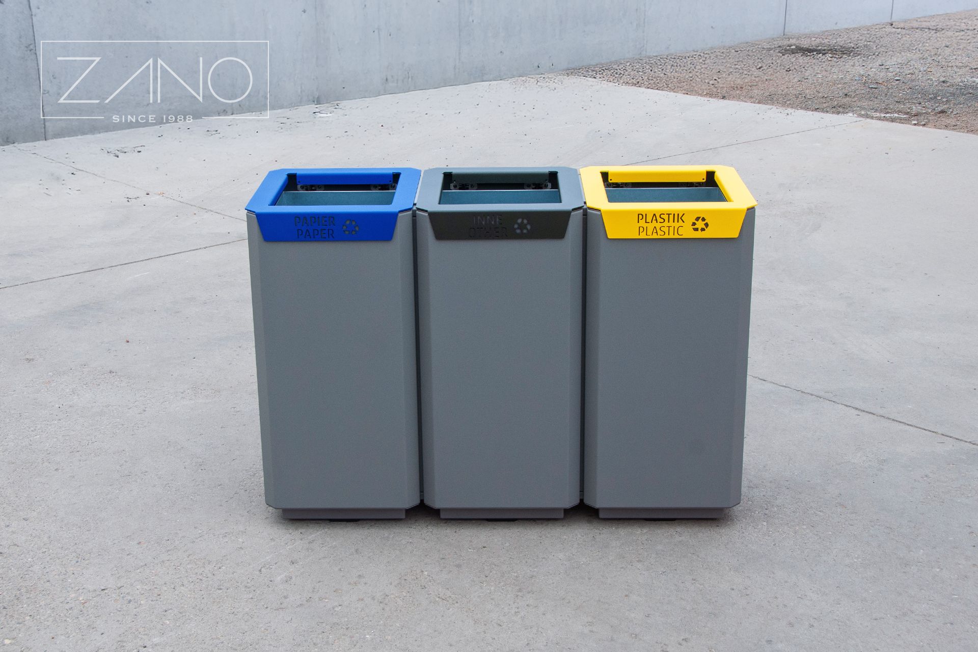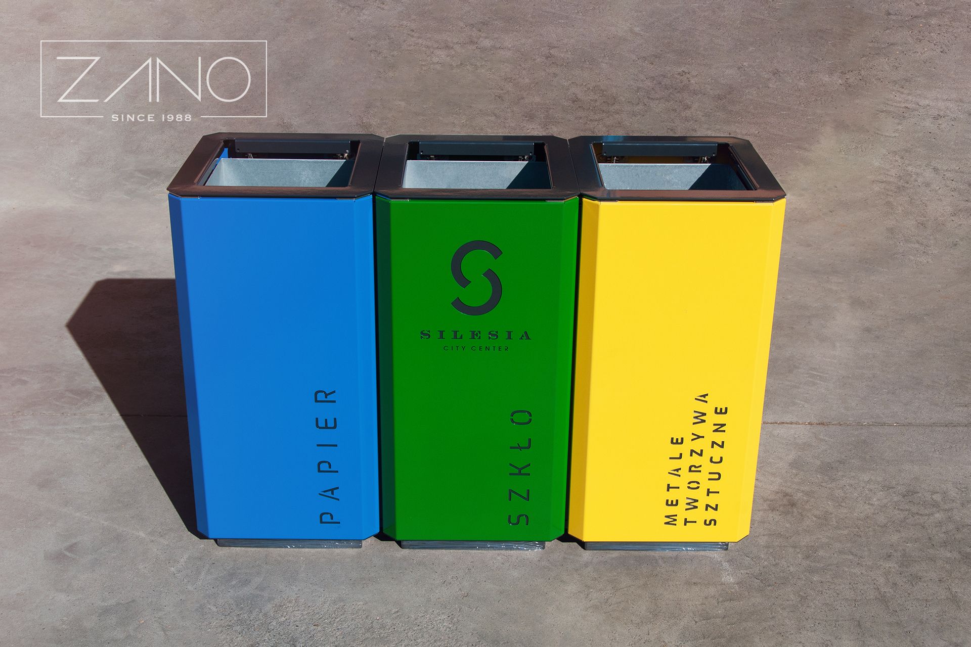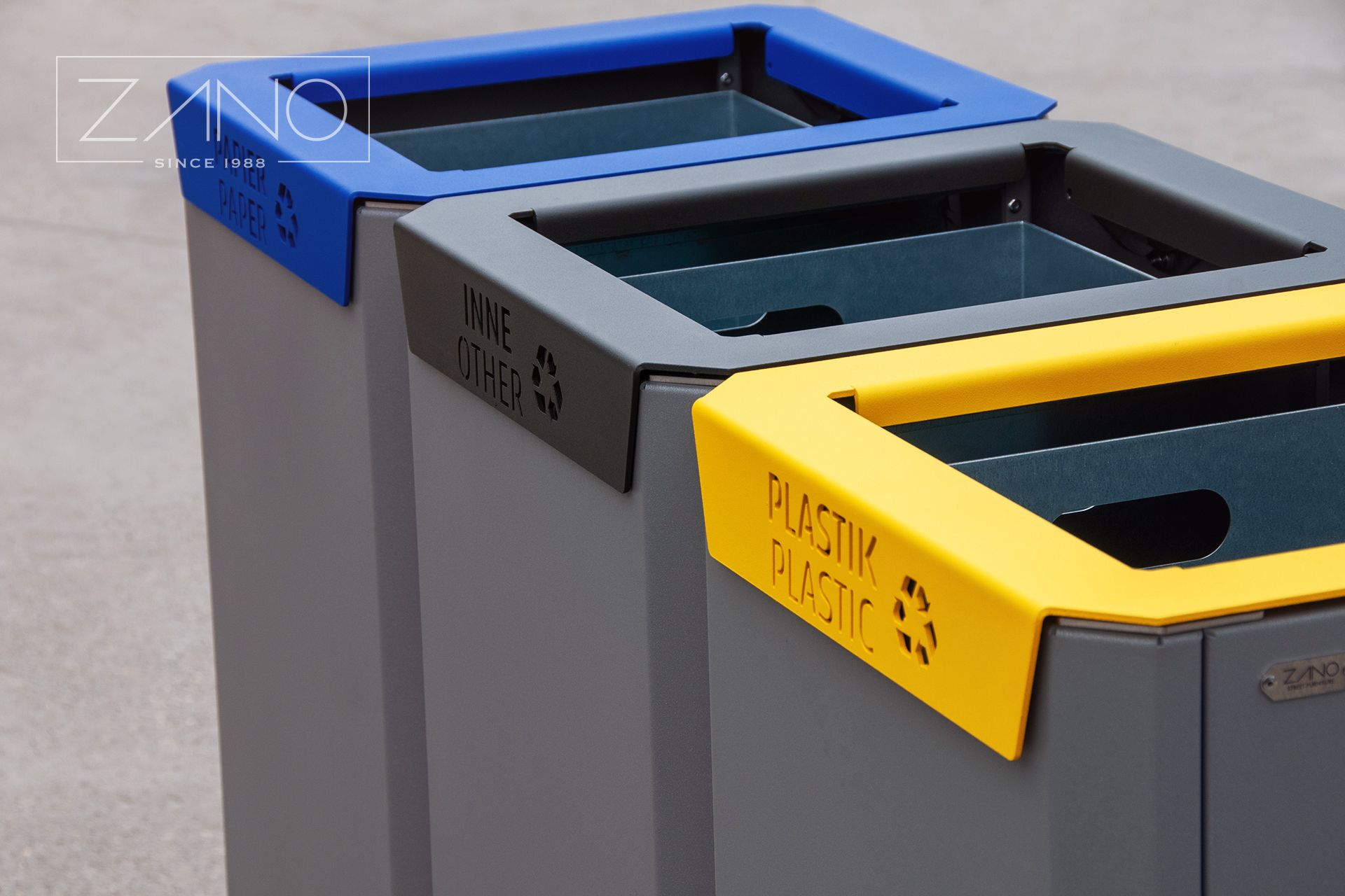 Stilo City Bins su linija modernih kanti za otpad. Uključuju pojedinačne kante za otpad, kante s pepeljarama i kante za odvojeni otpad, također s pepeljarama.