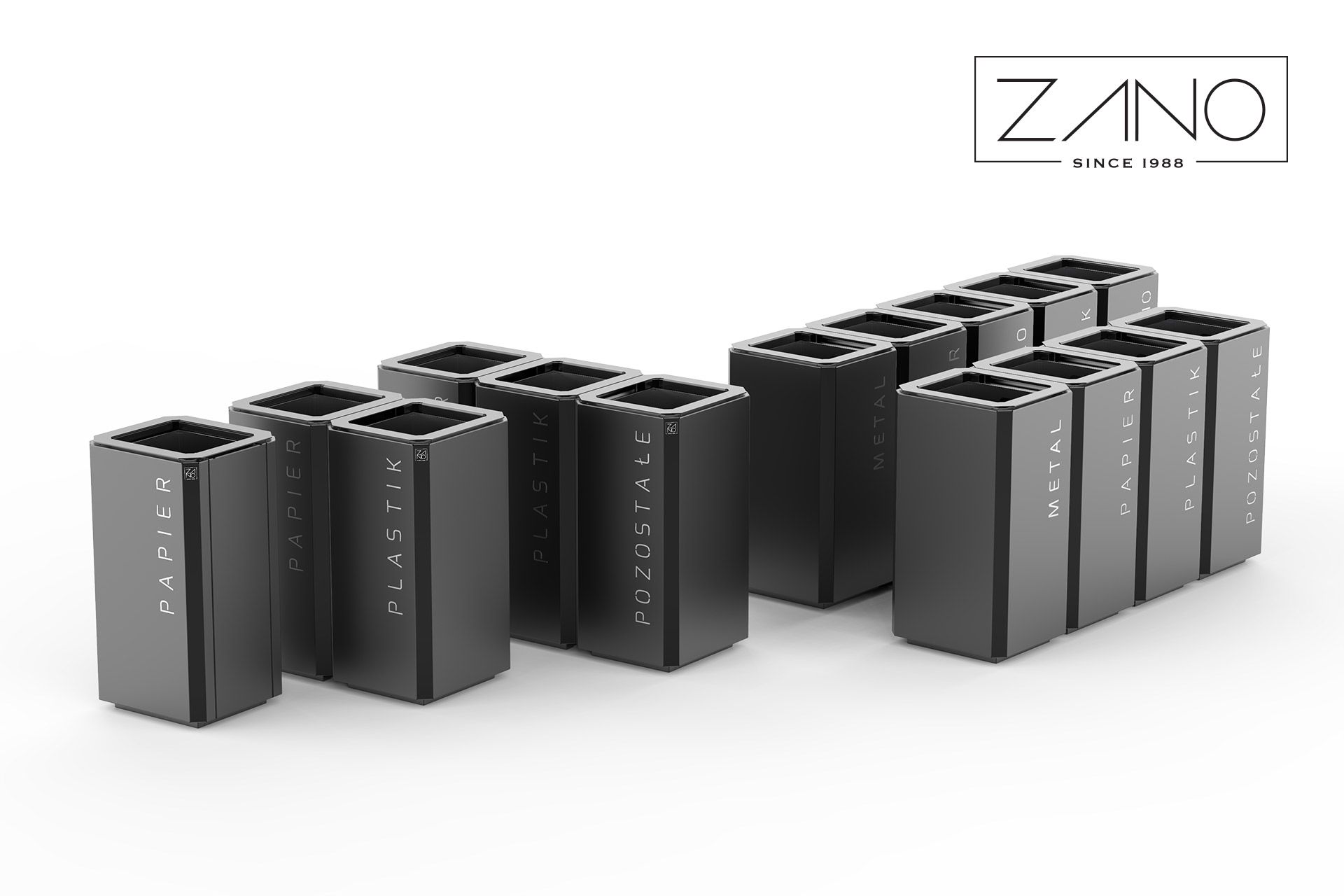 Stilo City Bins su linija modernih kanti za otpad. Uključuju pojedinačne kante za otpad, kante s pepeljarama i kante za odvojeni otpad, također s pepeljarama.