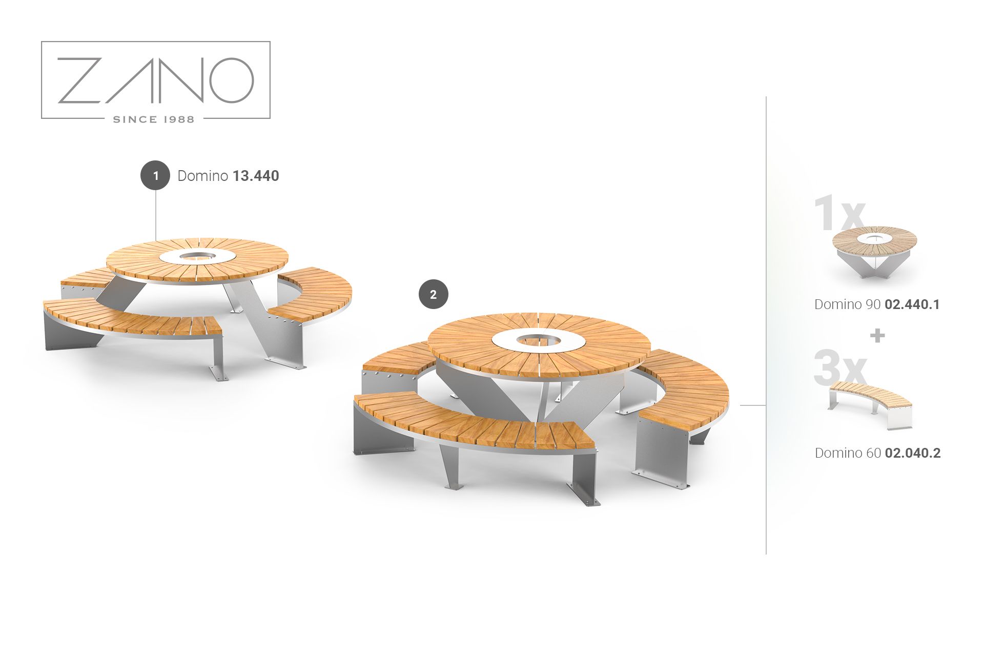 Dizajn Domino 60 pripada obitelji modularnih klupa dizajniranih za suvremene javne prostore. Koncept klupe temelji se na luku od 60°, što omogućuje stvaranje kružnog modula. Može uspješno okružiti deblo drveta (širine 298 cm) ili pružiti jedinstveni oblik sjedenja za bilo koji prostor. Zahvaljujući upotrebi visokokvalitetnih materijala, klupa Domino može se koristiti i u zatvorenom i na otvorenom u modernim javnim prostorima. Nehrđajući čelik, koji je temelj cijele konstrukcije klupe, jamči dugotrajnu izdržljivost i otpornost na oštećenja i promjenjive vremenske uvjete. Linija dizajna klupe Domino 60 predstavlja minimalizam temeljen na najmodernijim rješenjima u suvremenoj urbanoj arhitekturi.