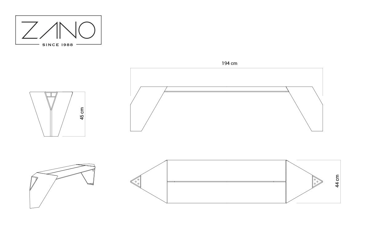 Model klupe IVO 02.445.2 je produžena verzija klupe, koja se proteže do 195 cm, bez naslona ili naslona za ruke. Dulje veličine omogućuju postavljanje tri ili više klupa oko stabla, stola ili drugog predmeta. Osnovna klupa izrađena je od ugljičnog čelika, plastificirana u bilo kojoj RAL boji. Sjedalo je izrađeno od smrekovog ili borovog drva, koje je također obojeno. IVO klupe su dizajnirane u dvije veličine, duljine 165 i 195 cm. Dostupne su u tri varijante: osnovna verzija bez naslona, klupa s naslonom i klupa s naslonima za ruke. Oblik klupe omogućuje slobodno stvaranje različitih aranžmana. Mogu se rasporediti linearno ili stvoriti zatvorene oblike. Dulje klupe omogućuju, između ostalog, trokutasti raspored oko stabla, dok tri kraće klupe mogu primiti žardinjeru unutra.
