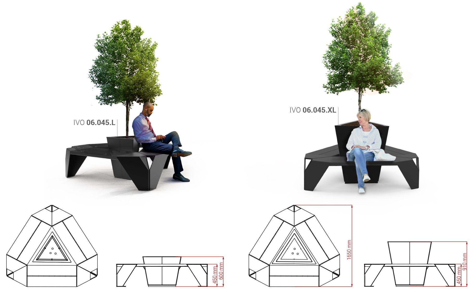 Svaka od IVO klupa, žardinjera i urbanih košara može se kombinirati u bilo kojem aranžmanu. Evo nekoliko primjera.