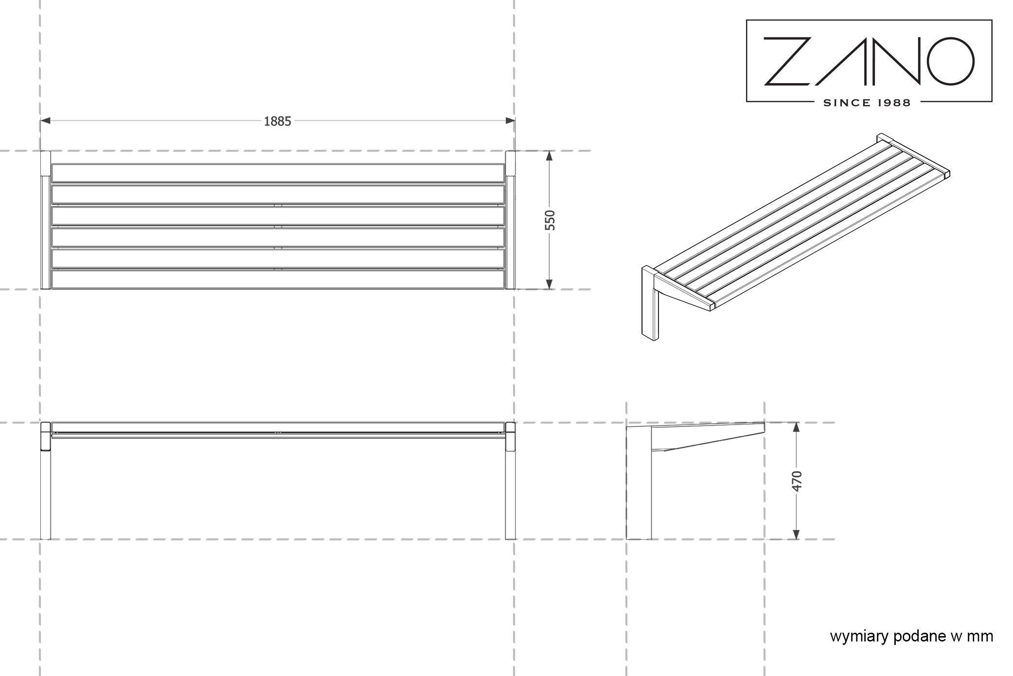 Od modela Seven se dodatno razlikuje po jednostavnijem čeličnom profilu i uvučenom naslonu. Poput klupe Seven, cijeli komad leži na dvije čelične noge - crne ili od nehrđajućeg čelika. Sjedalo je izrađeno od smreke, bora ili egzotičnog drva. Cijeli komad može se obojiti u bilo koju RAL boju. Klupa se pričvršćuje za tlo betoniranjem.