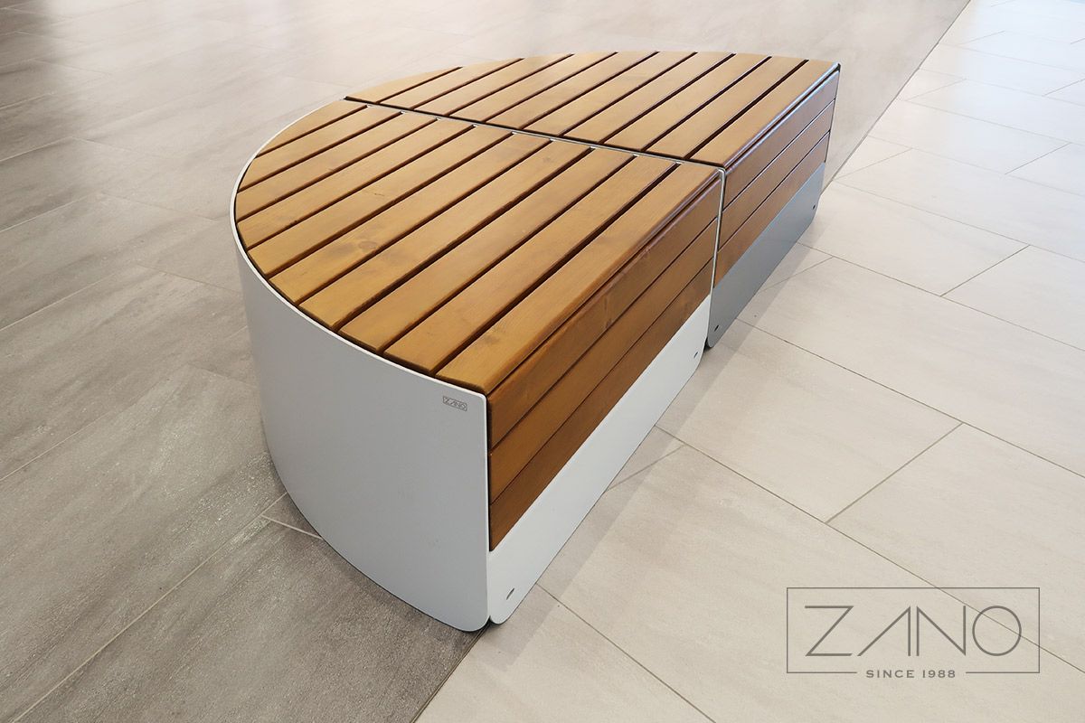 ORBIT KLUPE dostupne su u tri varijante: lijevi luk, desni luk i klupa s kvadratnom bazom, koje se, kao modularni elementi, mogu slobodno kombinirati međusobno, stvarajući različite konfiguracije.