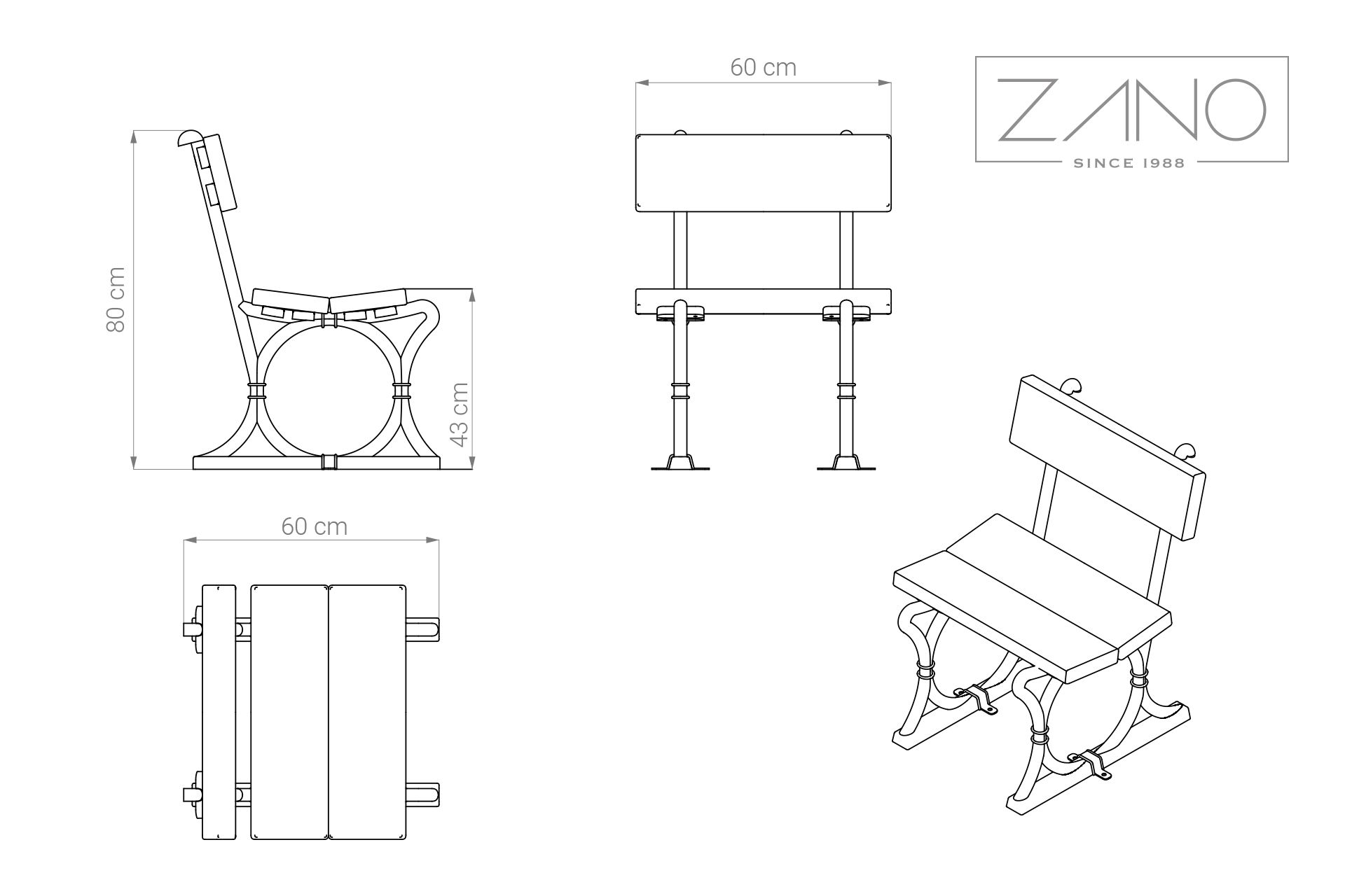 Sjedalo s naslonom iz linije namještaja Warszawskie. Dizajnirano za uparivanje sVaršavski stol , što stvara idealno rješenje za ugostiteljske objekte, restorane, kafiće, vrtove i parkove. U osnovnoj verziji, ovaj komad namještaja pričvršćen je za tlo pomoću ekspanzijskih vijaka postavljenih u betonski temelj. Po želji, komad može biti samostojeći. Konstrukcija od lijevanog željeza u kombinaciji s drvenim daskama. Odljevci od lijevanog željeza debljine 30 mm, praškasto obojeni premaRAL palete . Klupa izrađena od dvije drvene daske dimenzija 180 x 38 x 600 mm. Naslon izrađen od jedne daske dimenzija 78 x 182 x 600 mm.Drvo Možete birati između europskog mekog drva impregniranog i lakiranog dva puta ili egzotičnog drva impregniranog i nauljenog dva puta.