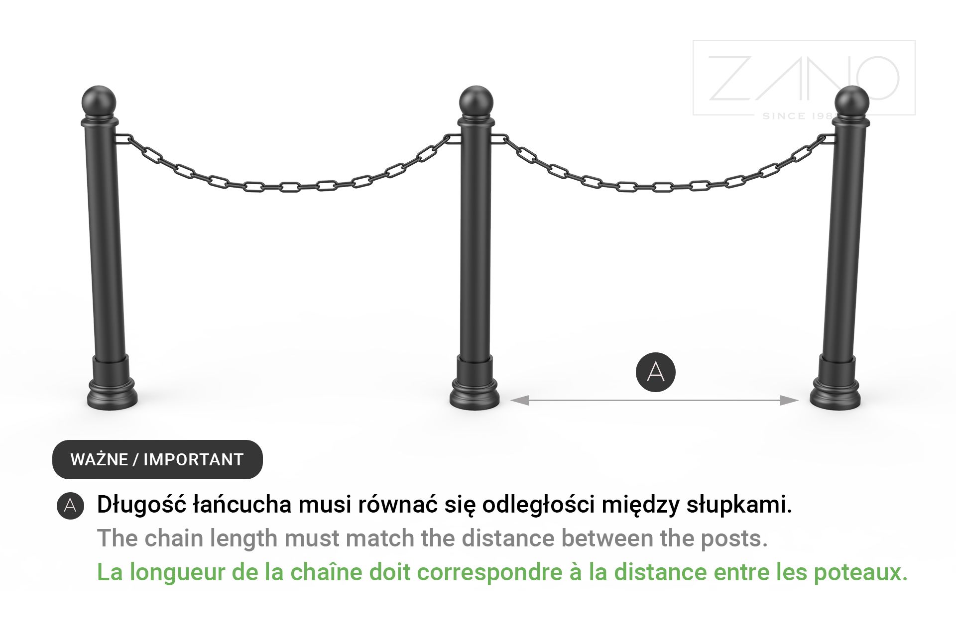 U prodaji su dvije vrste lančanih spojnih uličnih stupića:klasični koraljni lanac iČvrsti ukrasni lanac Ovisno o vašim potrebama, postoji pet opcija konfiguracije za stup s lancima. Opcija jedan - stup bez lanaca (zadana verzija), opcija dva - stup s jednom ušicom za lanac , opcija tri - stup s dvije ušice za lanac s obje strane stupa, opcija četiri - stup s dvostrukim pričvršćivanjem lanca s jedne strane , opcija pet - stup s dvostrukim pričvršćivanjem lanca s obje strane stupa . Ilustracija u nastavku prikazuje primjer stupa.Bene .