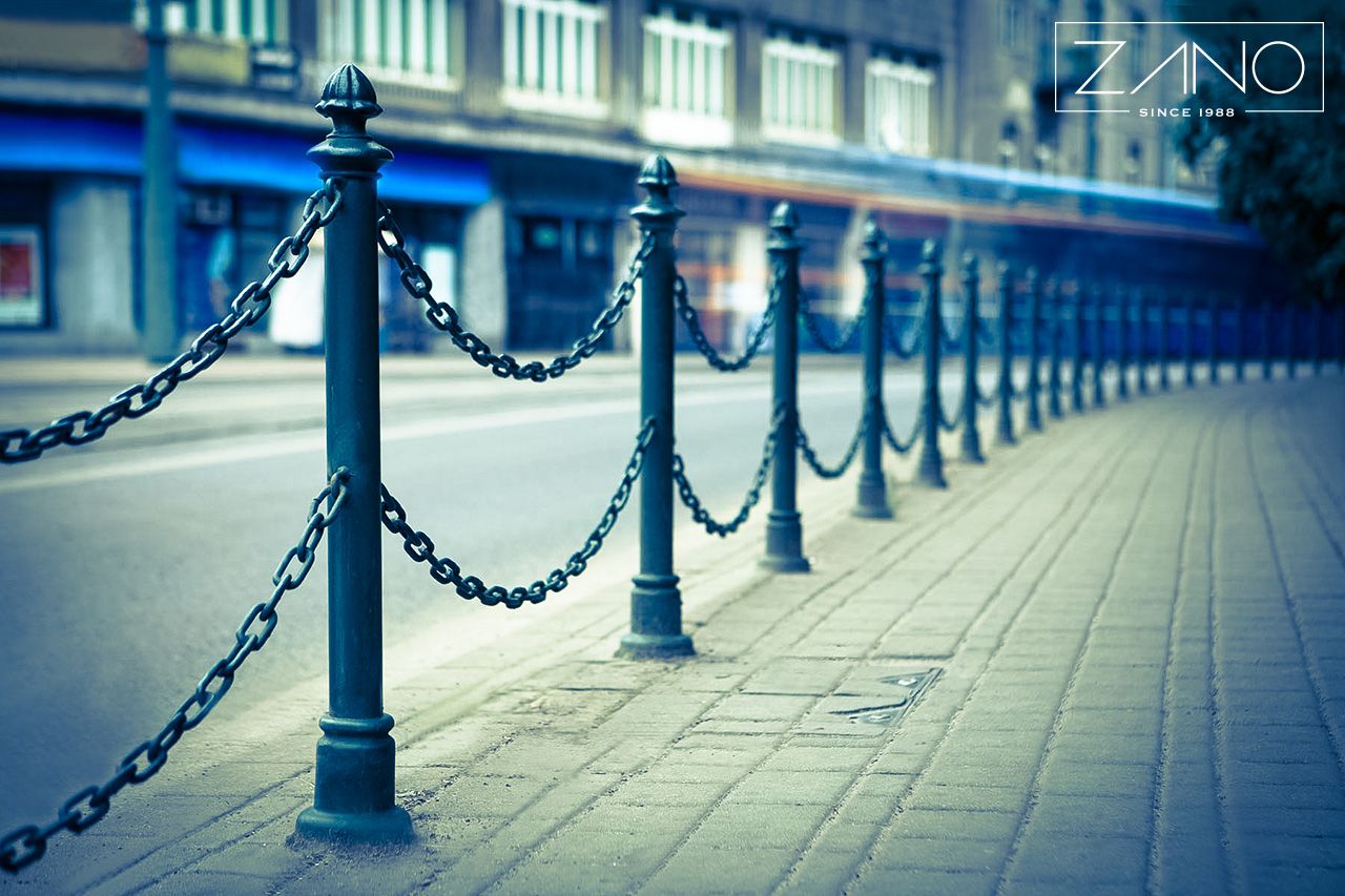 Jednostavan čelični lanac koji vam omogućuje spajanje odgovarajuće prilagođenih stupova za ograde. Ovaj jednostavan dizajn prikladan je za gradske ulice bilo koje vrste. Može zaštititi i odvojiti nogostupe od kolnika, parkirališta ili travnjaka.