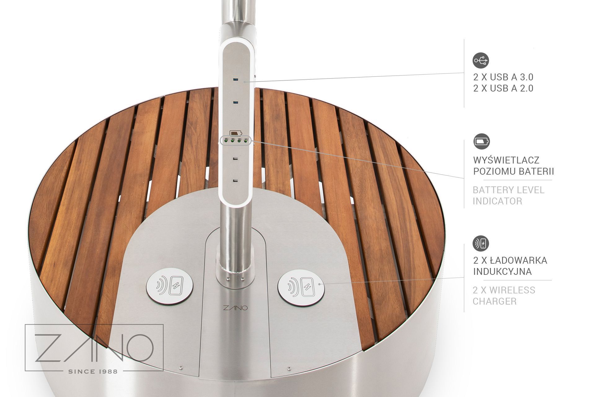 ZANO solarne stanice su moderni ulični namještaj opremljen fotonaponskim panelima. Ove solarne stanice pružaju neovisan izvor energije i rasvjete. Također pune mobilne uređaje i omogućuju pristup internetu.