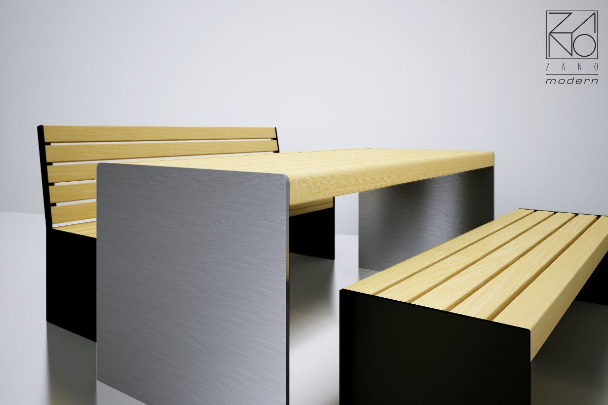 Ovaj moderni Simple stol iz linije Modern stilski podsjeća na Simple klupe koje se nalaze u trgovačkom centru Bonarka u Krakowu. Konstrukcija stola temelji se na čeličnim limovima. Ploča stola izrađena je od drvenih dasaka.